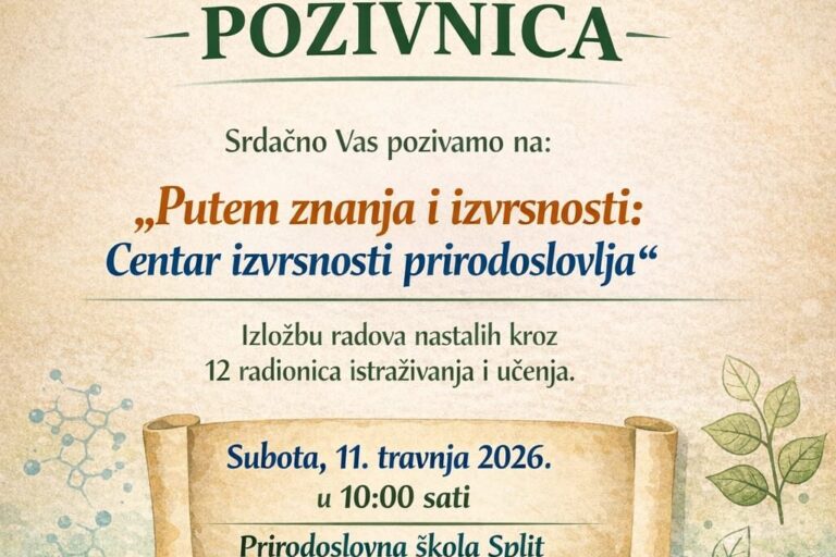 Projektni dan Centra izvrsnosti prirodoslovlja održat će se u Prirodoslovnoj školi Split u subotu, 11.…