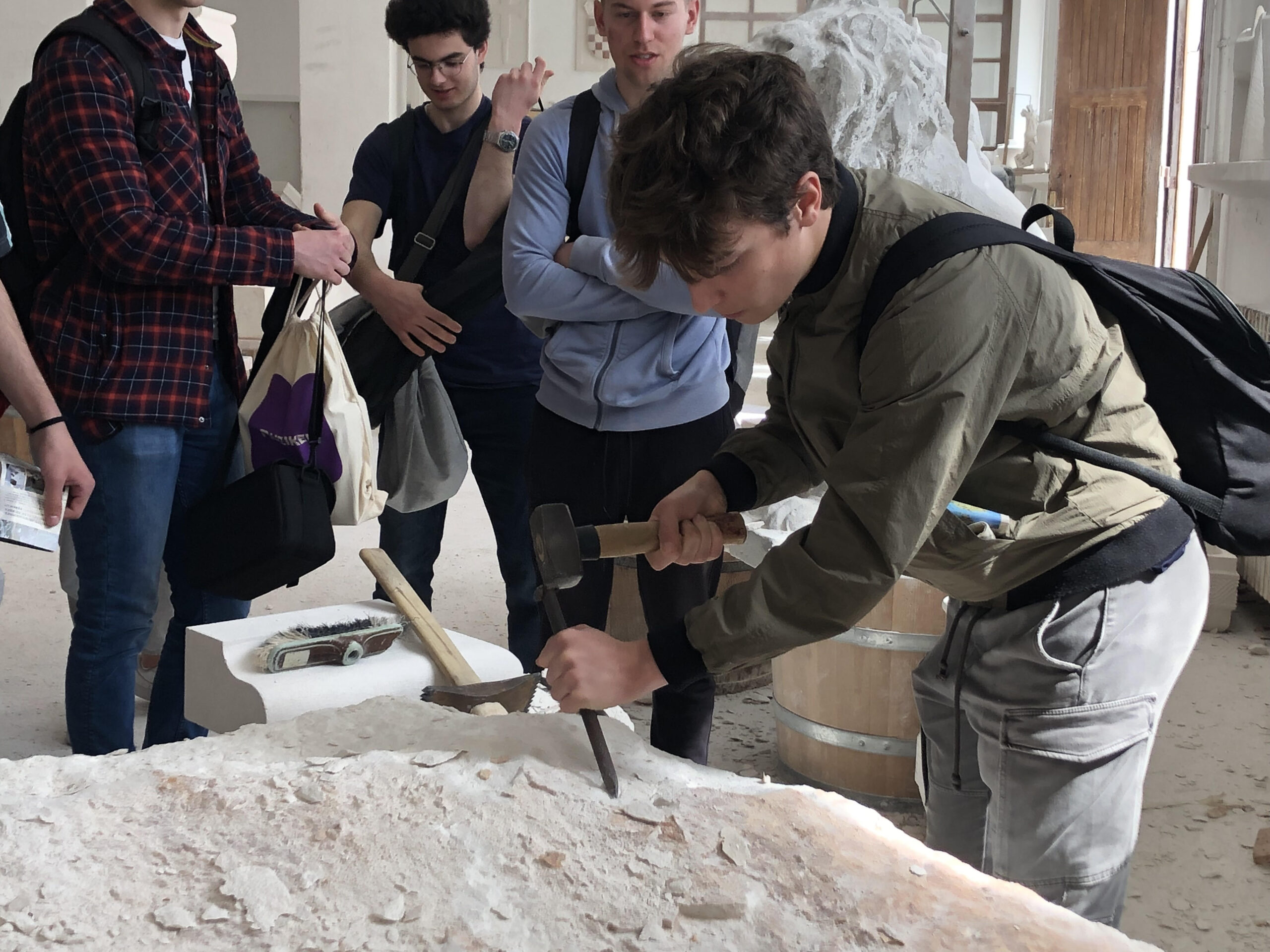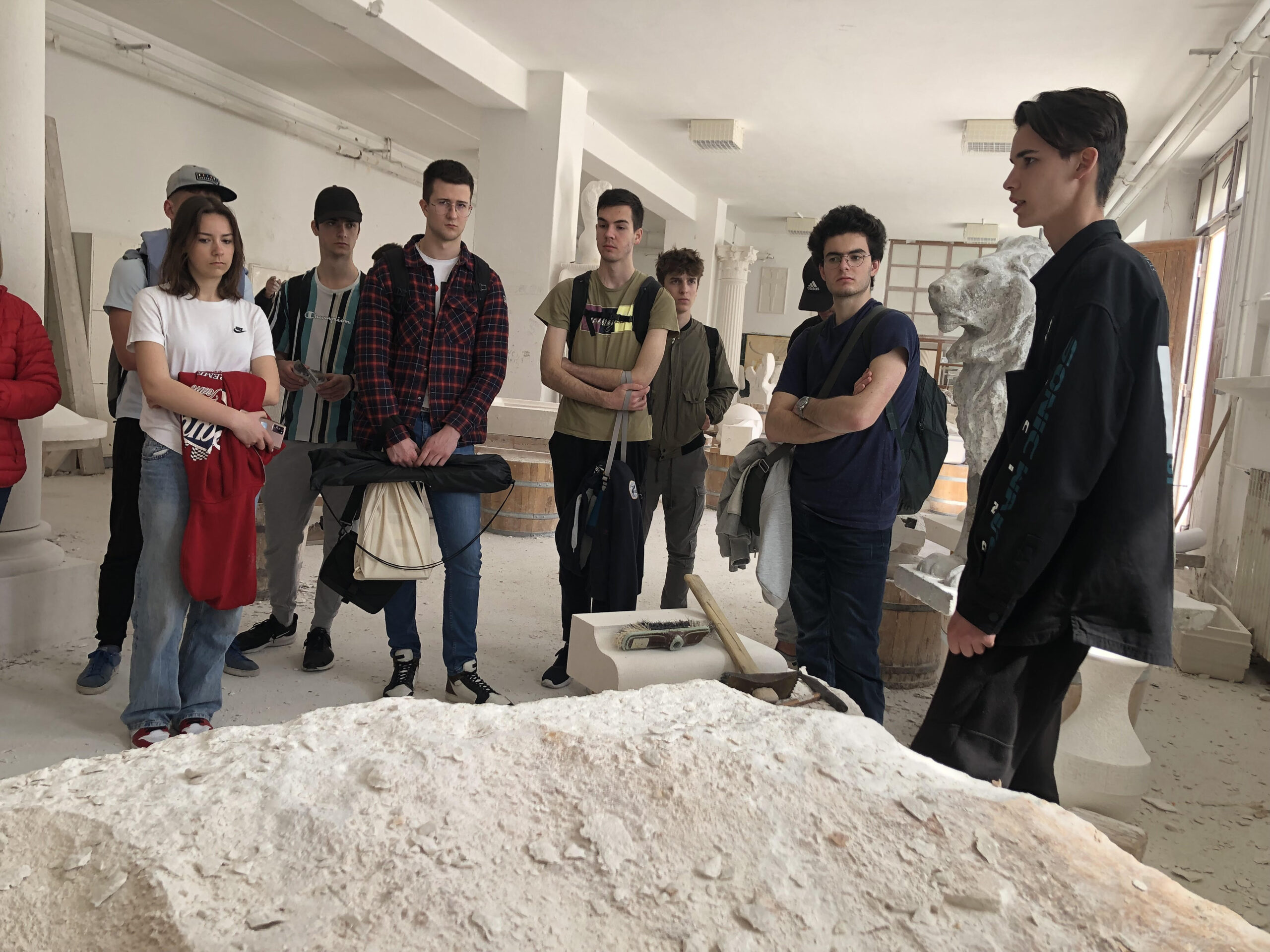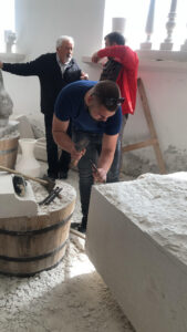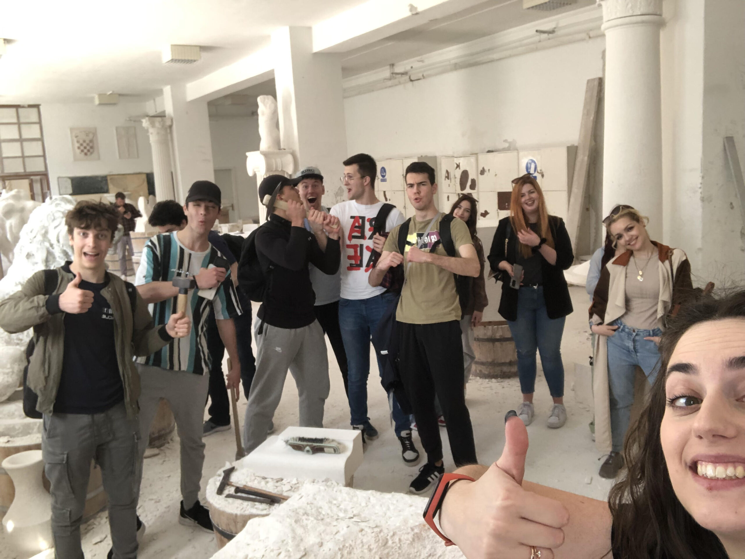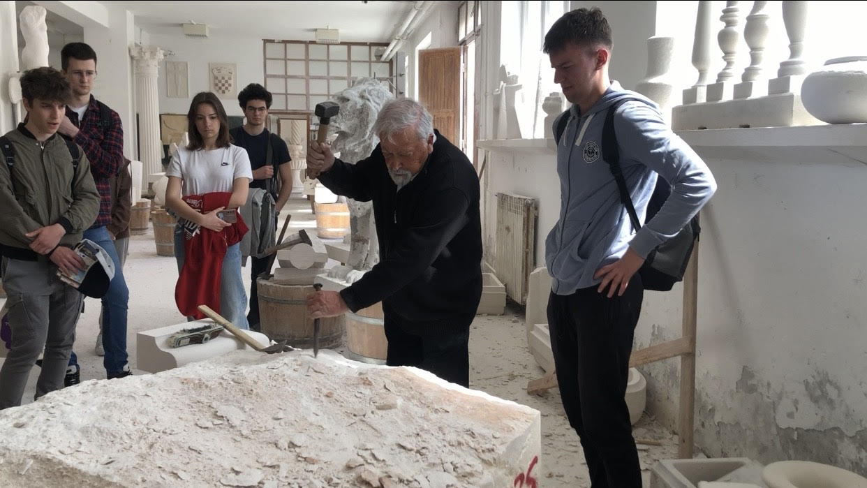 U subotu su naši čuvari baštine (učenici 3. i 4. razreda, gimnazija i prehrambeni tehničari) pod vodstvom profesorica Dorotee Lukač, Zrinke Maras i Iliane Gudelj proveli divan dan u gostima u Klesarskoj školi Pučišća. Sve nas je pozdravila ravnateljica Tamara Plastić te uputila na majstore zanata. Učenicima se obratio umirovljeni majstor Zdravko Matijašić (83 godine) te nas sve oduševio pričom o tehnikama klesanja i raznim alatima. Ono što je specifično kod njihove škole i radionice jest činjenica da učenike usmjeravaju na rad s rimskim ručnim alatima te njeguju tradicionalnu obradu kamena. I naši su učenici i profesorice imali priliku okušati svoje snage i vještine u klesanju. Nakon radionice uslijedilo je snimanje kadrova za novi film u produkciji naših čuvara. Puni novih znanja i vještina, učenici su se vratili kući u poslijepodnevnim satima. Pratite nas i dalje jer uskoro izlazi film.