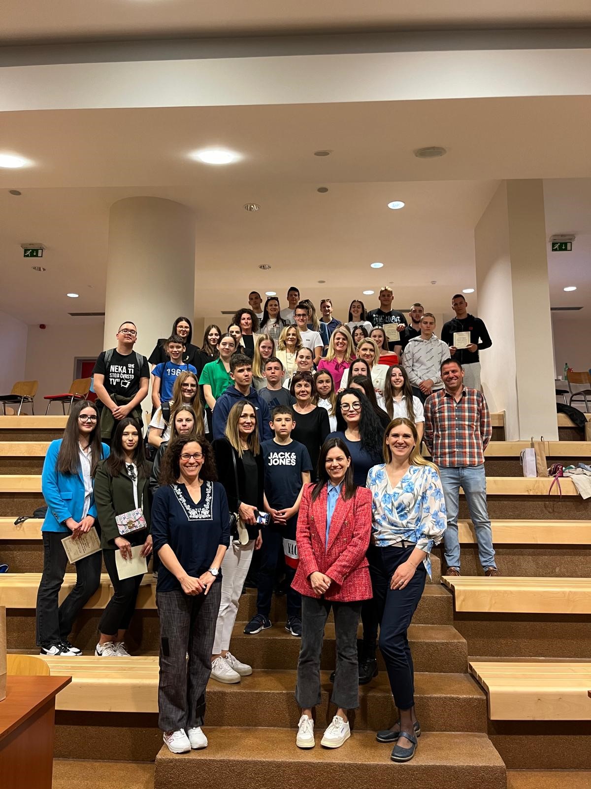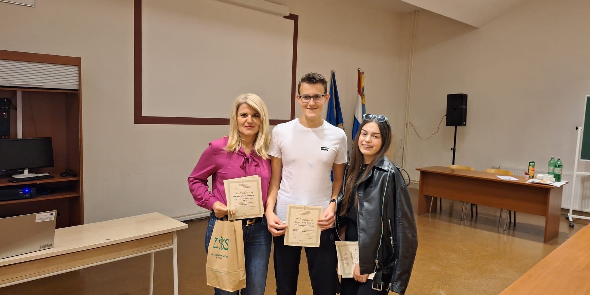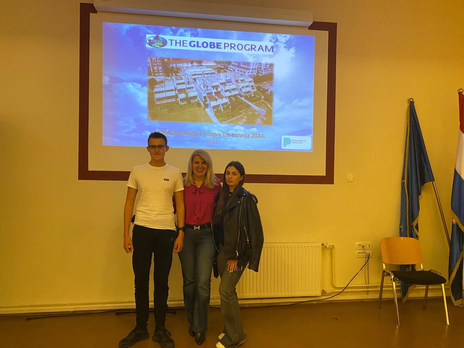 Učenici naše škole su 9. travnja 2024. sudjelovali na Međužupanijskoj Smotri i natjecanju hrvatskih GLOBE škola. Zdravstvena škola Split bila je domaćin natjecanja regije jug na kojoj je sudjelovalo 13 škola, 9 srednjih i 4 osnovnih škola s područja Splitsko-dalmatinske, Zadarske i Dubrovačko-neretvanske županije. Našu su školu predstavljali učenici 2.b razreda Petra Kuić i Ante Buljević pod mentorstvom nastavnice Andrijane Poljak. Učenici su prezentirali mjerenja u području atmosfere, hidrosfere i pedosfere, sudjelovanje u raznim EKO akcijama i projektima.